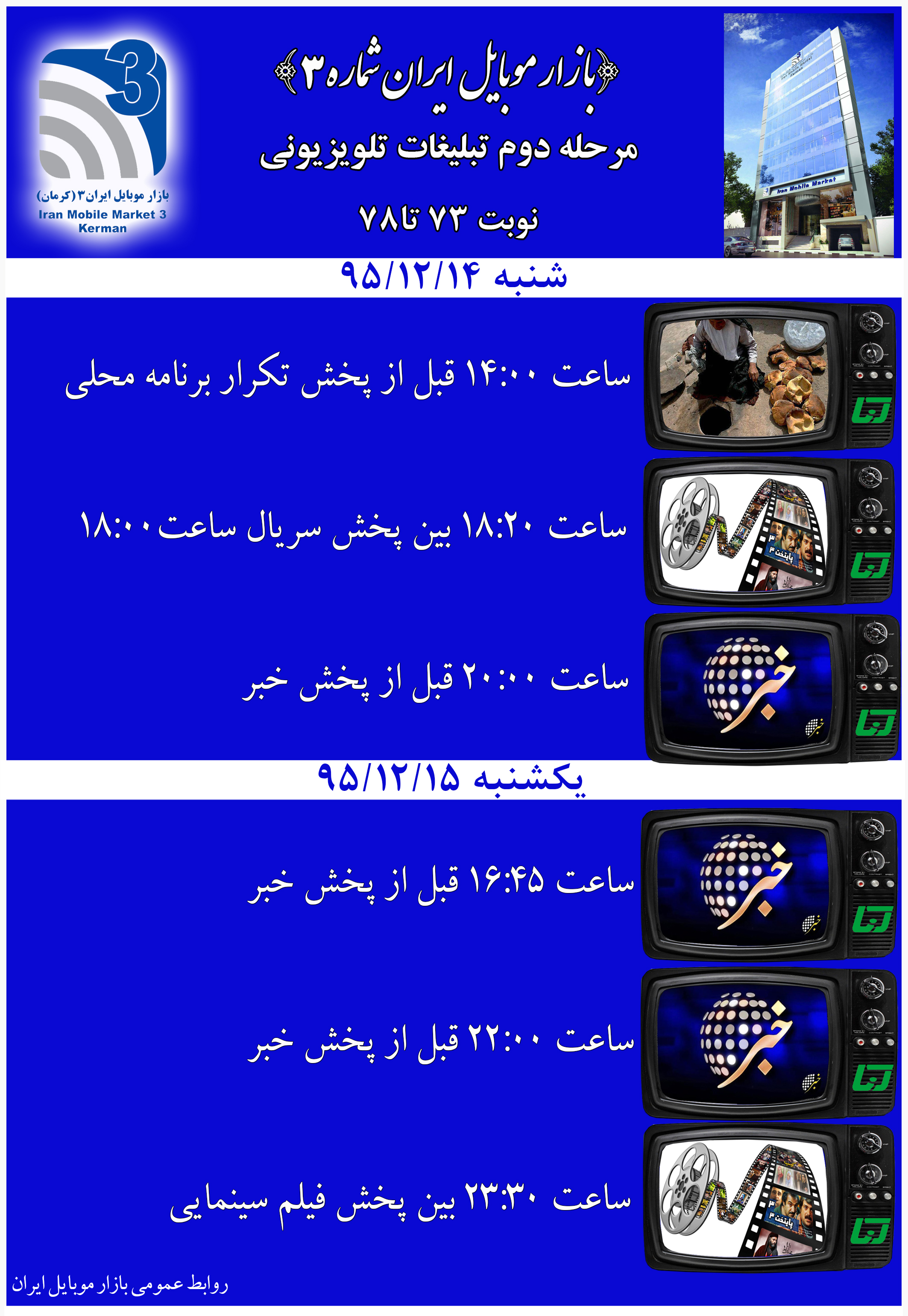 پخش مرحله دوم تبلیغات تلویزیونی بازار موبایل ایران شماره 3 نوبت 73تا 78 دوشنبه, 25 آذر 1404 برای حمایت از محتوایی که میپسندید، به اشتراک بگذارید: