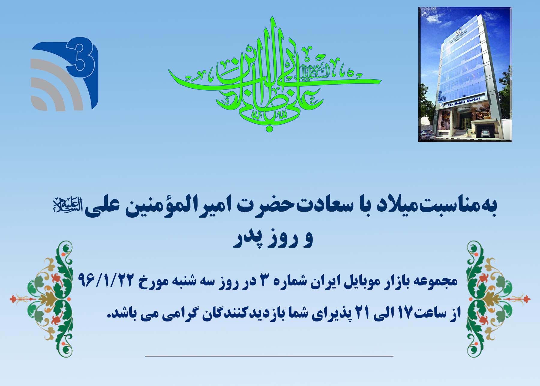 ساعات کار مجموعه بازار موبایل ایران شماره 3 در روز میلاد حضرت امیر المؤمنین علی (ع) و روز پدر دوشنبه, 25 آذر 1404 برای حمایت از محتوایی که میپسندید، به اشتراک بگذارید:
